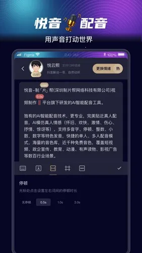 悦音配音是一款超棒的配音软件!它由深圳制片帮网络科技有限公司开发,有数千种独特音色,适用多种场景。不管是制作短视频还是广告语,把文字录入就能快速获得配音。这里不仅有普通话,各种方言也能使用,满足不同需求。