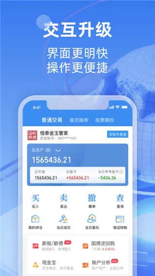 恒泰金玉管家最新手机版是恒泰证券推出的多功能证券交易客户端,具备证券行情、交易、融资融券等功能。有安全稳定、快速便捷特点,能持仓分析推送资讯,还有专业投顾在线解答,助您把握投资机会。