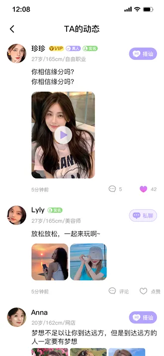 安全可靠:平台经过高效认证,能够过滤广告骚扰,并且通过真人视频认证审核,全方位保障每一位用户的安全。