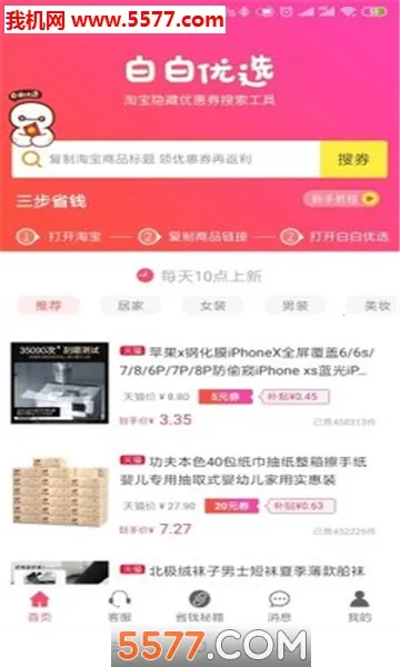 白白优选app是省钱购物神器,整合全网优惠券,覆盖主流电商平台。复制标题可领券,有9.9包邮等活动,提供专属外卖优惠。商品品类全、更新快,安全可靠,让用户花更少钱,享购物实惠。