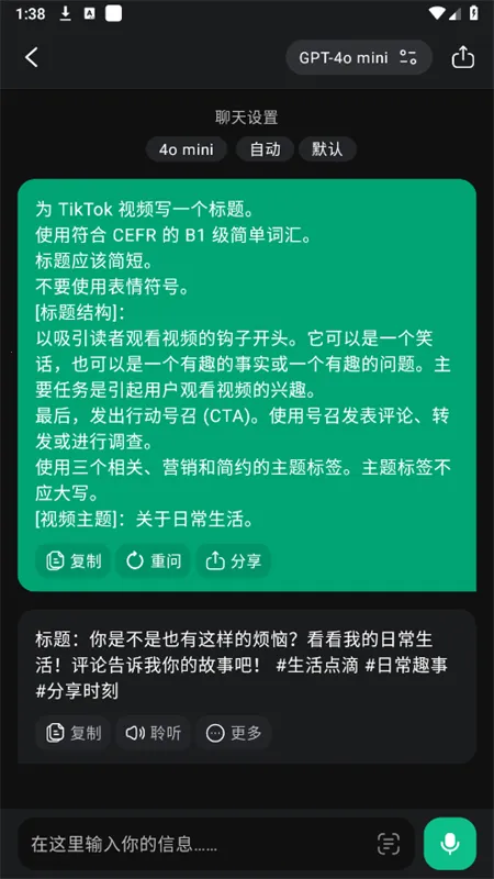 2. 结果更可复制:回答倾向于给出结构化内容,如步骤要点清单与可直接使用的文案,方便一键复制分享,提高效率。