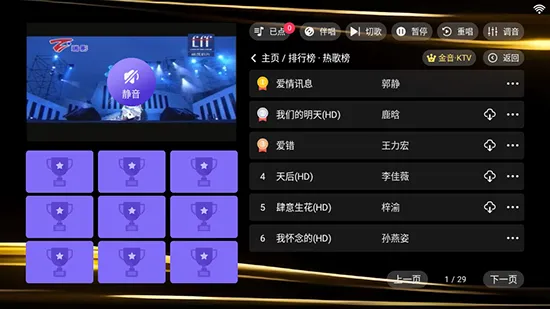 金音KTV点歌系统安卓版手机版是功能全面的智能点歌软件,无需登录或VIP免费使用,海量曲库每日更新,支持多种搜索方式,部分版本语音点歌,还能跨终端无缝切换,创建个人歌单,操作流畅体验好。