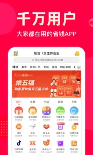 极省app是重庆新想互动科技有限公司开发的手机购物软件,能帮用户找优惠券省钱。有海量大额优惠,商品品类丰富,涵盖多领域。每日更新9块9商品,还有找券、线报等功能,提供优质服务,让购物更省心实惠。