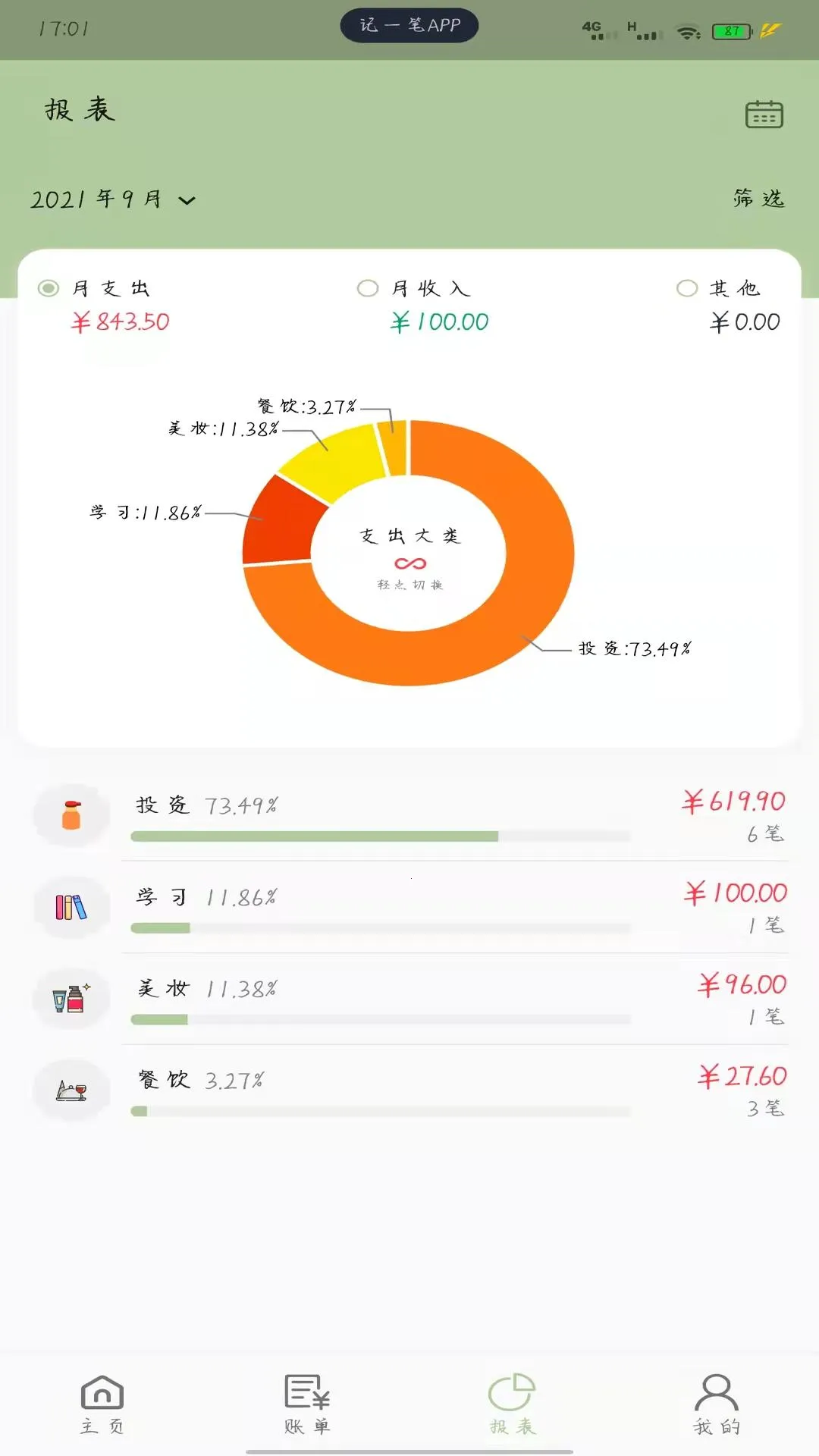 记一笔app是有钳智能科技有限公司出品的精简笔记本软件。可随时记想法、整理思绪或备忘。能记账,轻量便捷无广告。支持多账户资产管理、丰富分类、细分报表、分类预算,数据安全,有指纹等加密及快捷导入导出功能。