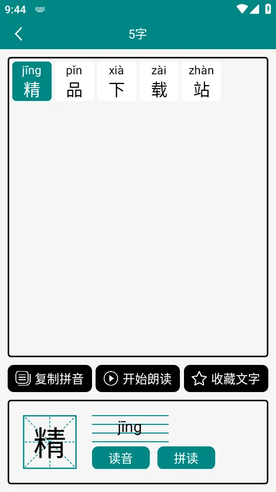 2. 附上专业朗读,支持全文朗读,让用户听汉字发音认拼音,学习更轻松。