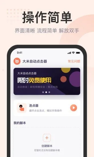 1. 无需root,即可自动点击屏幕,轻松解放双手。