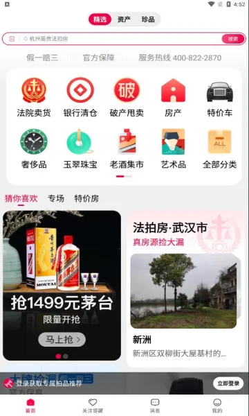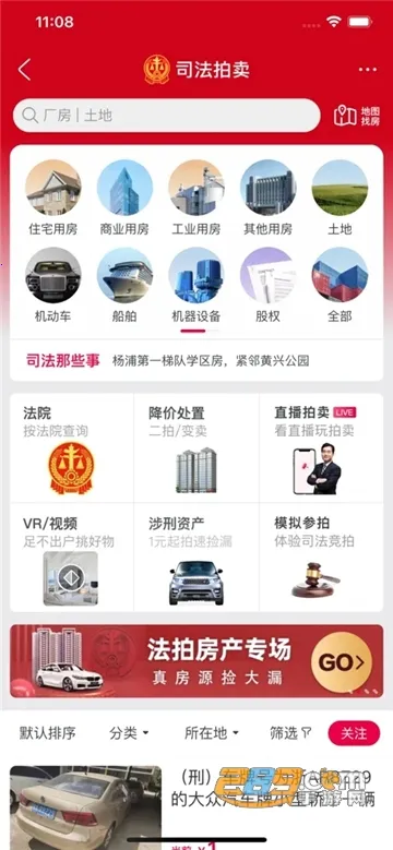 多专区分类全:设有司法拍卖专区和珍品拍卖专区,涵盖资产、土地、房产、机动车、艺术品等多种品类,满足不同需求。