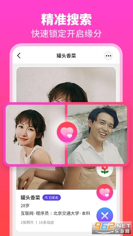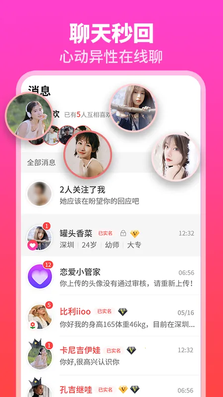 1. 聚集众多优质单身年轻人,能随时与喜欢的类型聊天,轻松找到兴趣相投的人。
