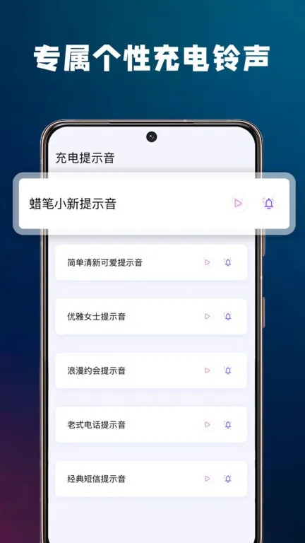 2. **个性化提示音设置**:可为开始充电、断开充电、充满电三种状态分别设置提示音,提供趣味搞笑、清新潮流等多种音效库,动画与音效同步播放,打造沉浸式充电体验。
