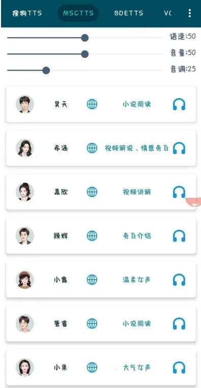 Multitts是一款超棒的语音合成软件。它能把文字快速转换成自然流畅的语音,不管是看小说、读新闻还是做视频解说旁白,都能轻松应对。软件里有上百种高品质音源,涵盖各种男声女声,还有丰富的背景音乐任你选,能定制个性化音频。操作也不难,导入语音包后就能试听编辑,比如长按头像单独设语速音量等参数。设置系统默认TTS,授权后在其他软件里就能用它朗读。它支持离线使用,没广告超清爽。还能对语音包引擎编辑、添加删除排序和导出数据。在合成语音时能选本地音乐当朗读BGM,能添加规则识别角色用指定发音人朗读。总之,Multitts能满足你各种语音包使用需求,让朗读变得超方便,快来试试吧!