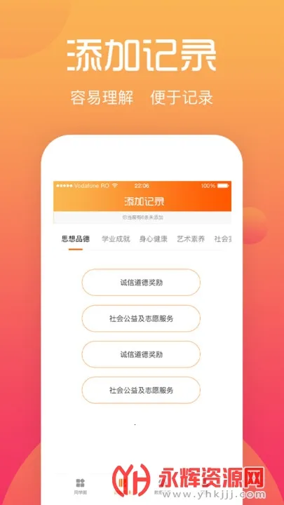 这是一款助力学生综合素质评价的软件。学生能轻松记录日常行为,软件据此生成报告。它涵盖多方面评价模块,满足多样需求。提供数据分析功能,可查看排名,还能对他人记录质疑、交流。具有同学圈、可分类添加记录并上传图片等特色。操作简单,如打开软件点击添加记录,按要求填写个人信息、学科成绩等。能快速记录行为,配合拍照简化操作,减轻负担,为学生提供全面快捷的评价体验。