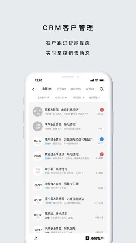 3. 完善的客户管理:crm客户管理功能强大,不漏单不拖延,大大提升成交率,帮助销售有条不紊地管理客资,随手管理跟单情况。