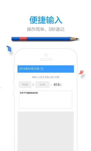 操作简单,5秒速记:简单易上手,无需复杂操作步骤,短短5秒就能快速记录信息,提高记账效率,让打工者能迅速记录下工作情况。