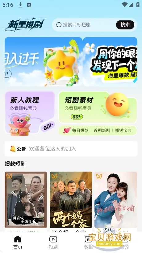 新星推剧是专注短剧资源的平台,为达人提供丰富素材。达人可剪辑推广获收益,平台详细分佣。软件功能丰富,有多种题材短剧,支持二次创作,提供专属推广工具,收益模式多元,数据监控便捷,提现功能也方便。