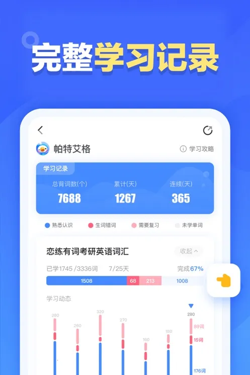 1. 科学计划词根背记:依据独特遗忘算法与词根记忆法,配合纯正发音,背单词轻松容易。