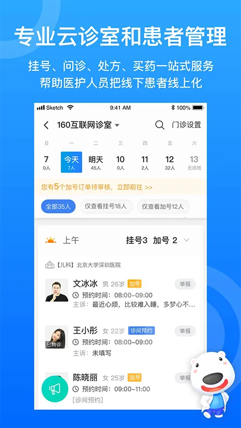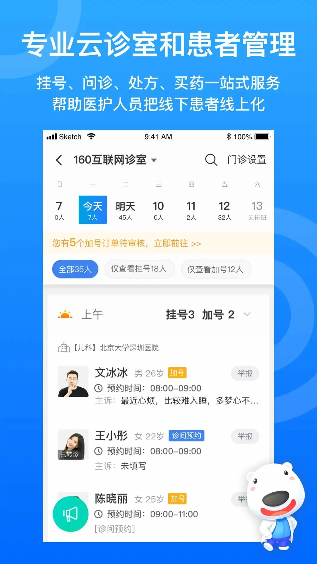 便捷高效:提供线上预约、线上诊室、电子处方等多种功能,让医护执业更加便捷高效。