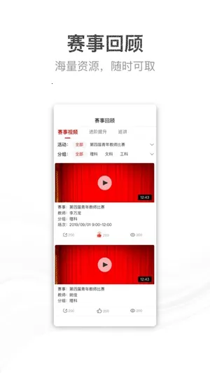 海量资源随时可取,这里有海量的往期视频资源,能让教师随时查看,获取更多比赛经验,助力教学能力提升。