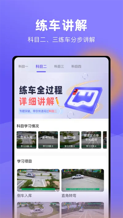 学习资源超丰富:提供全科目的理论和实操技能学习资源,学员能在线学习驾考各科目,包括交规知识、驾驶技巧等,还可自主安排学习进度和时间。