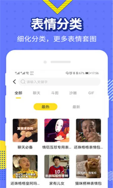 海量资源:最火表情包App收录超50万个热门表情和10万个表情包合集,涵盖萌娃、沙雕、鬼畜、动漫等全网流行素材,静态动态图一应俱全,满足各种聊天场景需求。
