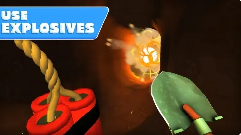 在《掘地求财》这款游戏里,你能化身为寻宝者开启刺激的地下挖掘冒险。游戏玩法简单又有趣,启动后能自由控制角色移动和挖掘,还有提示引导你找到挖宝地点。不断向下挖,各种珍稀道具、金钱和稀有宝藏就会出现。把挖到的宝藏卖掉能换金币,用来提升铲子等级、买入新工具,让挖掘更高效。
