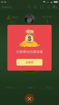芝麻单词app真的能赚钱!它把学习和赚钱结合起来,让孩子主动学英语。孩子每闯过一关(6个单词),就能赚到零花钱,零花钱能直接提现到微信或支付宝,秒到账。有了赚钱动力,再加上同学间能相互监督的班级功能,孩子学英语更有坚持下去的毅力。