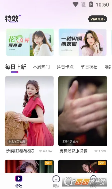 3. 多样滤镜特效素材,可在视频中自由添加。