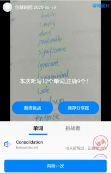 2. 拍照取词效率高:具备拍照取词功能,拍照上传单词表后可精准生成听写题,快速获取听写素材,节省准备时间。