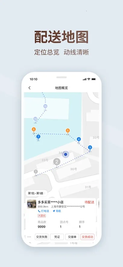多多买菜司机版官方版是面向多多买菜司机的物流配送工具,能助司机管理订单、查看客户信息。有门店分配、导航等功能,可提高运输效率,实现供应链透明化管理,还能一键联系客户、标记送达,操作方便。