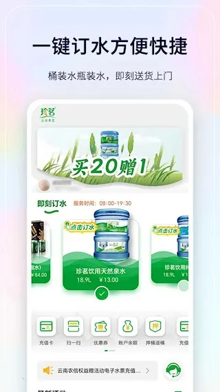 珍茗好生活app是一款超实用的送水预订平台。要是你想退桶,操作起来并不复杂。首先打开app,找到相关订单管理选项。在这里,你能轻松查看历史订单和消费记录,对于未配送的订单,还支持修改和取消。找到你想要退桶的订单,按提示操作就能完成退桶流程啦。它能解决你退桶的实际需求,让你省心不少。平时订水也很方便,能随时取出手机订水购票,下班前预订,到家就有水喝,节省时间。还有优惠促销活动不会错过,支持多种付款方式。而且每桶水都有防伪保障,采用265位加密防伪技术,桶身二维码与瓶盖安全码双重绑定,全程可溯源,水质检测报告可查,让你喝得安全又放心。从下单到配送全程数字化管理,配送进度实时可查,真的超贴心。