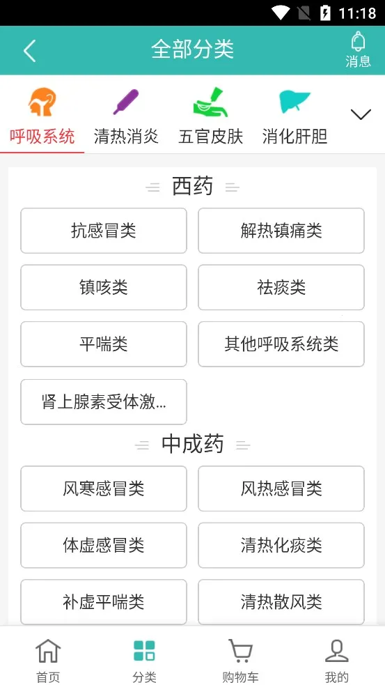 3. 药品分类种类齐全,按分类或一键查找,快速定位所需药品。