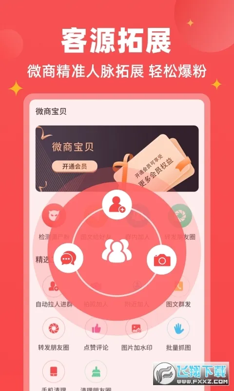 功能上,能批量水印,保护图片版权;一键加粉,快速增加微信客户;群发功能超便捷,可群发给群和好友,还能选图片发送。特色有稳定高效、极简操作,消息群发可带图,支持文字水印自定义,还有图文转发、大咖导师培训。能检测僵尸粉不打扰好友,自动操作。想在微商路上轻松前行,它绝对是你的得力助手,快来试试吧!