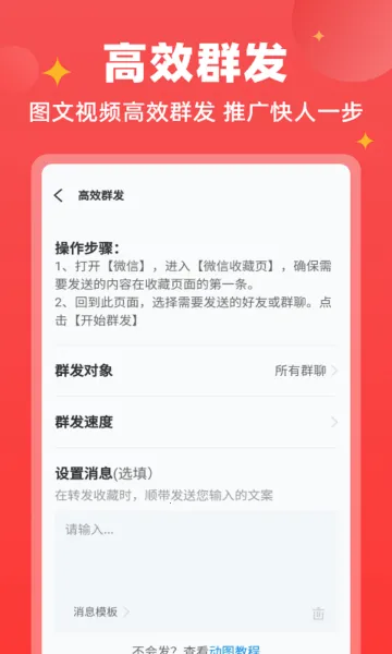 2. 消息群发超便捷:可选择图片发送,开启群发新时代。