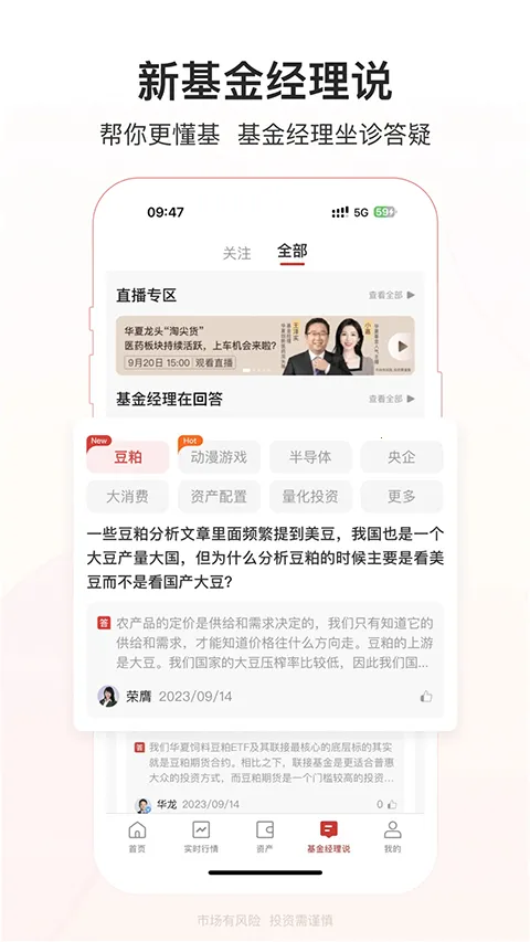 3. 功能丰富:可实时查询账户余额、损益分析、历史分红、交易明细等;便捷查询华夏基金所有产品每日净值涨跌幅及历史净值走势;还能查询沪深两市股票信息以及国内全市场基金净值信息。