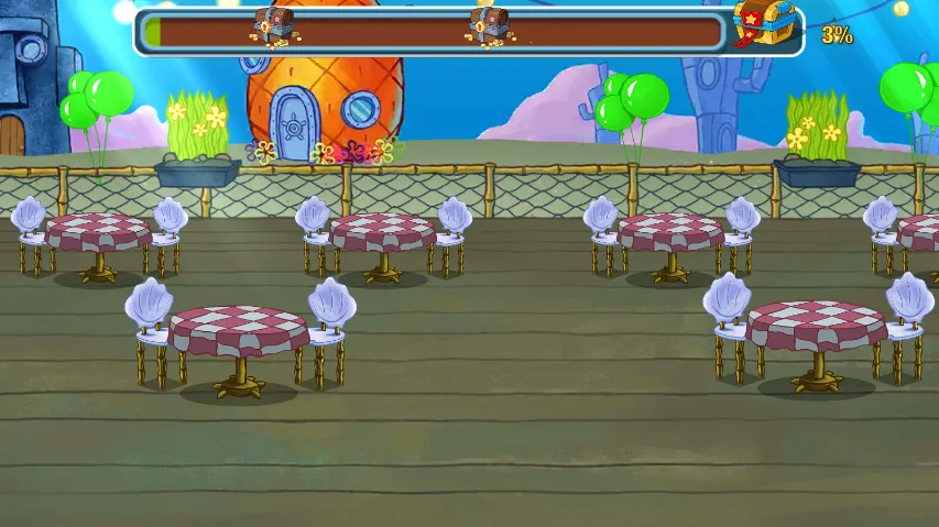 1. 与海绵宝宝等经典角色互动,蟹老板、派大星、章鱼哥、珊迪依次登场,为游戏增添趣味。