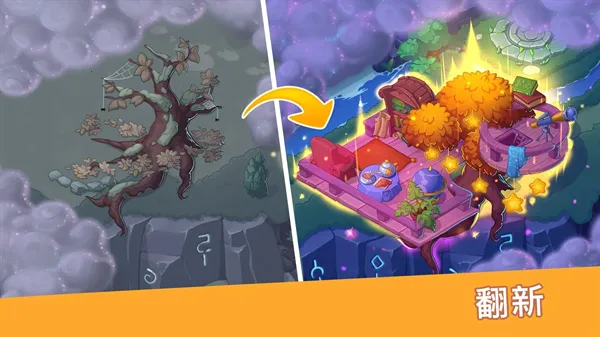 1. 丰富合成玩法:岩石、植物、魔杖、神器等皆可合并,升级产物用于修复建筑或完成订单,操作简单且有策略深度。