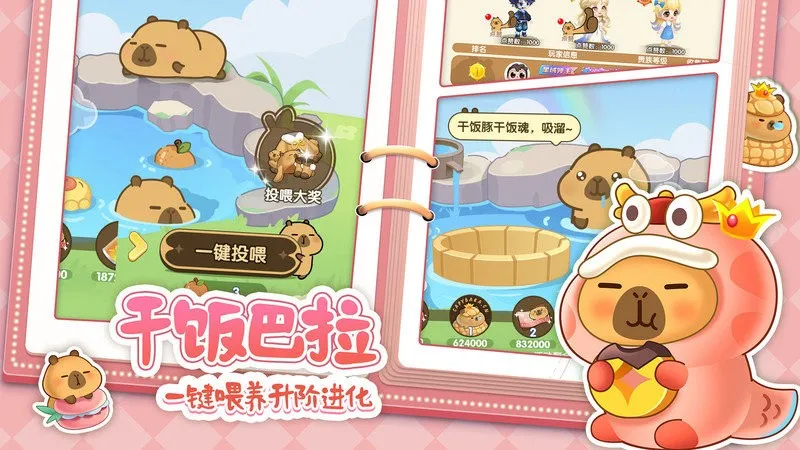 玩法休闲解压:游戏整体轻松休闲,你可以轻松养鱼放松心情。无需繁琐操作,照顾好小鱼就能自动攒资源,还有多种趣味玩法,如水上集市、摇摇乐、扭蛋机等。