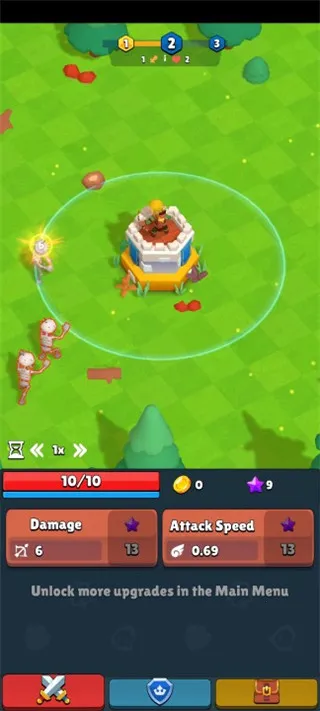 2. 升级要素助生存:升级弓箭手和塔,提升战力,收集战利品卡片,升级资源数量,是在魔法世界生存的关键。