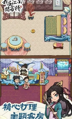 轻松经营,乐趣无穷:采用低门槛高自由度的休闲经营逻辑,无需复杂操作就能深度参与客栈成长全过程,享受经营的乐趣。