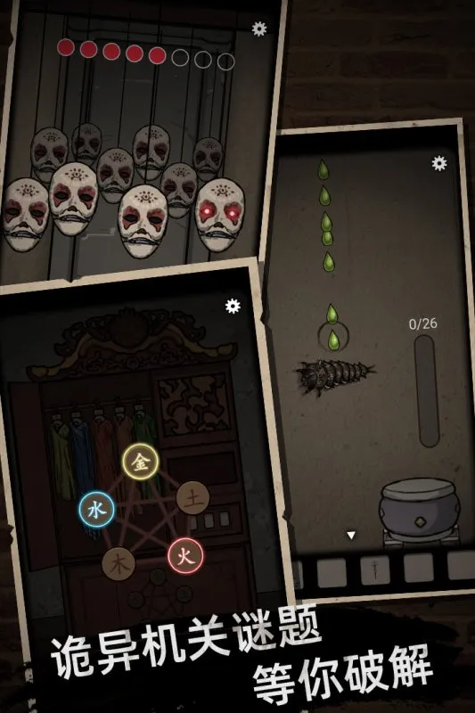 丰富解谜元素:深山老屋的每个角落都藏着秘密与谜题,如八卦盘、茶壶、金木水火土的诡异机关等,还有诸多需要解开的关节,等待玩家运用智慧破解,享受烧脑乐趣。