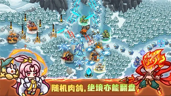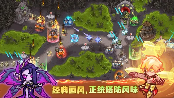 1. 经典玩法体验:游戏采用经典塔防玩法,玩家能召唤英雄守卫王国,感受正统塔防体验。熟悉的画风,仿佛置身于熟悉的王国保卫战场景中,唤起玩家心中的热血与激情。