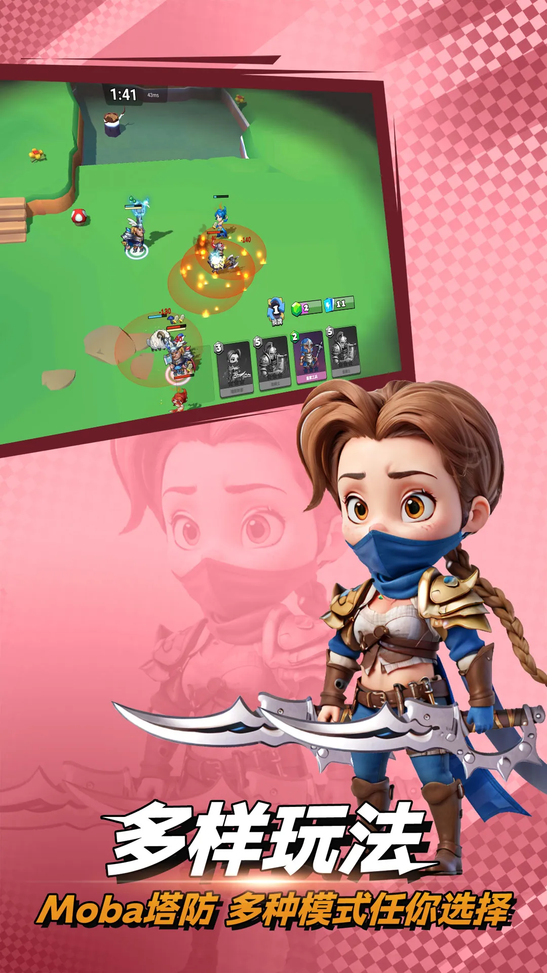 1、多元融合玩法独特:巧妙融合卡牌收集、即时战略与MOBA操作,打破传统卡牌静态对战模式,强调走位时机与阵容搭配的动态博弈,带来全新战斗体验。
