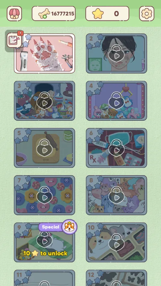 1. 关卡丰富多样:每个关卡都有独特内容,主题各异,如整理物品、清理脏污、处理伤口、打扮化妆等,自由挑战,趣味十足。