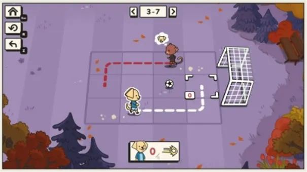 2. 玩家扮演小狗足球队主教练,通过虚拟按钮指导狗狗完成动作。
