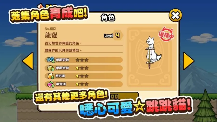 3. 猫咪角色超丰富:除主角跳跳猫外,还有来自猫咪大战争的各种角色登场。玩家可以通过踩跳跳杆等方式搜集各种新奇猫咪,体验不同角色在游戏中的独特表现,解锁新猫咪的过程也趣味十足。