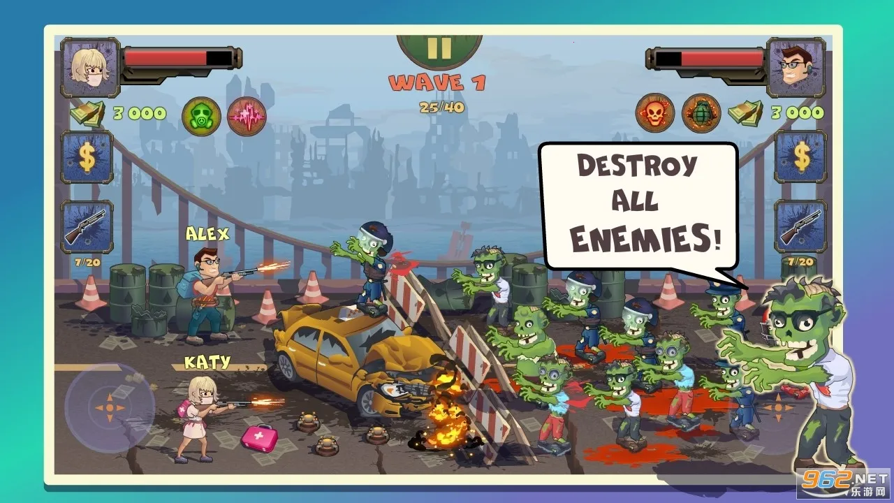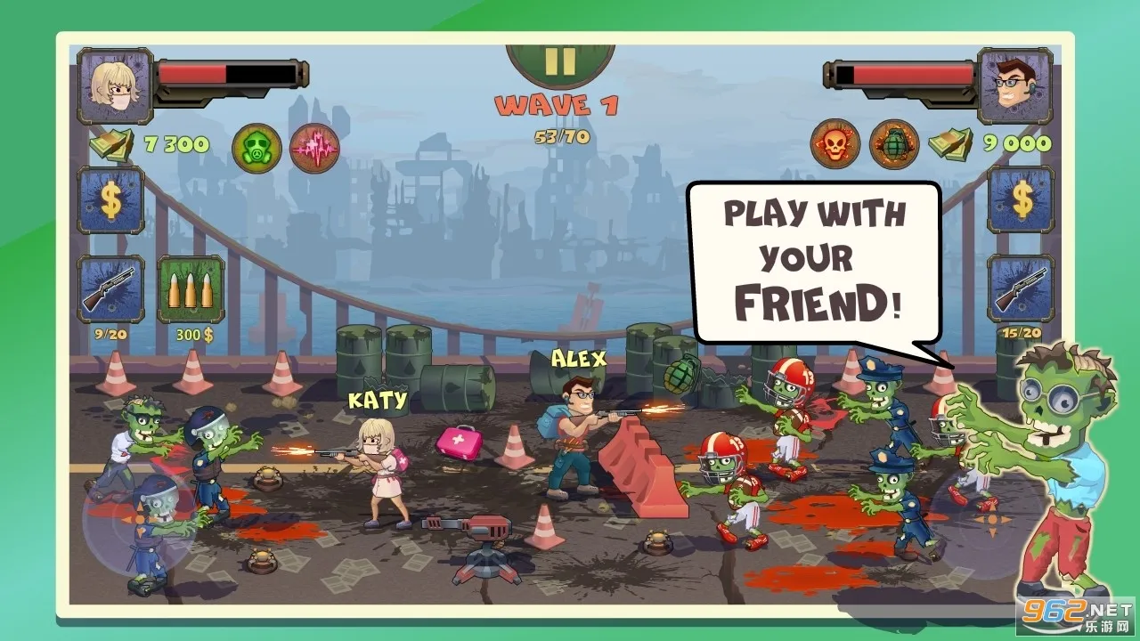 两个人与僵尸免费版是手机角色扮演游戏,人物场景立体,武器系统丰富。玩家要与伙伴联手对抗僵尸,操作简单射击刺激。新版玩法有资源管理合作等,特色是Q萌画面,优点是合作独特、画面音效精美、难度具挑战性。