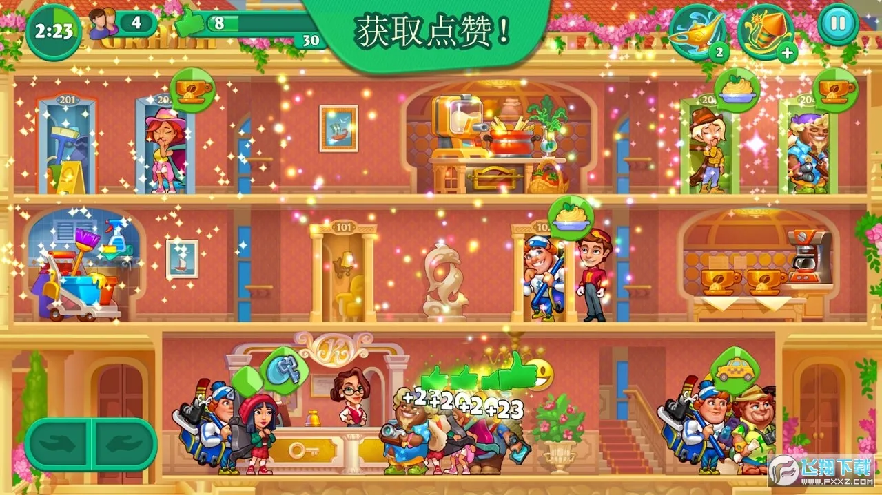 1. 玩家可从初始小旅馆起步,逐步打造连锁豪华大酒店,体验酒店发展全过程。