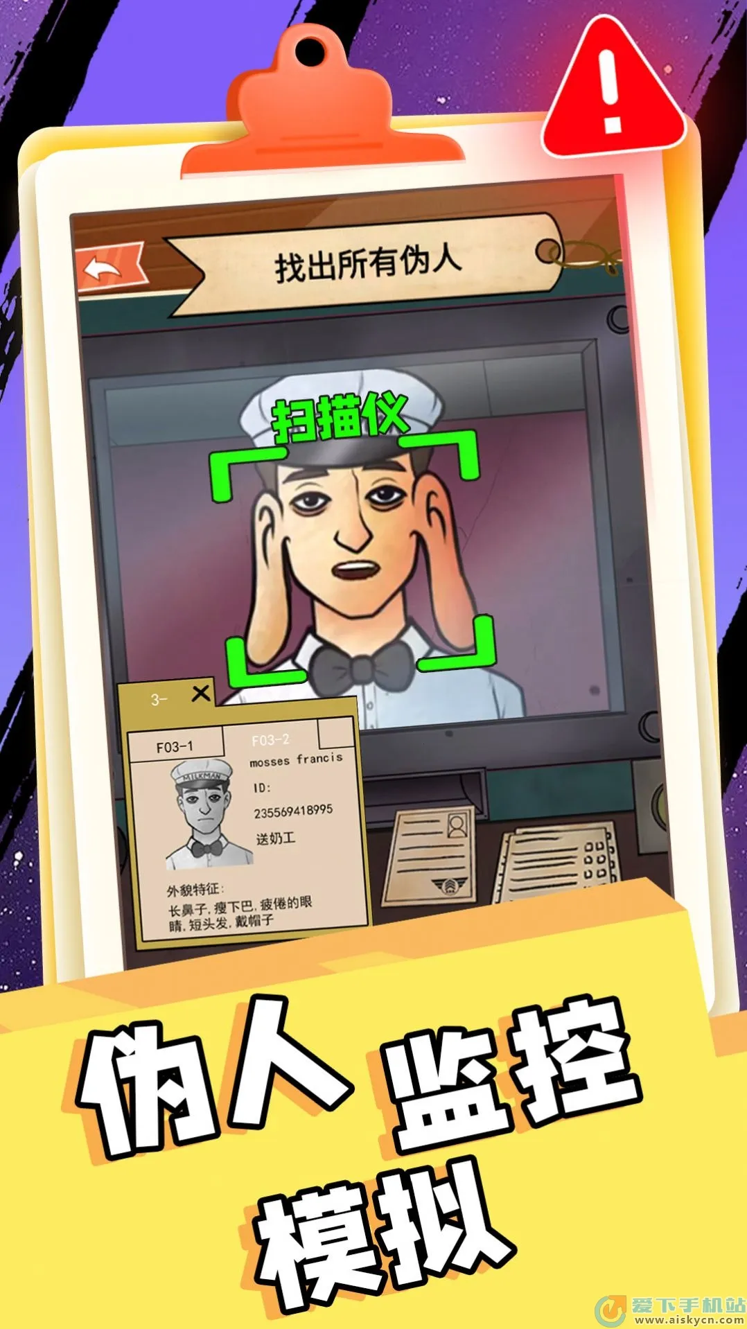 伪人监控模拟是冒险闯关游戏,玩家要通过观察细节神态动作找出诡异伪人。操作简单,关卡众多,画面细腻。极具趣味性,考验观察与推理能力,还有独特剧情、复杂谜题,能自由探索发现秘密。