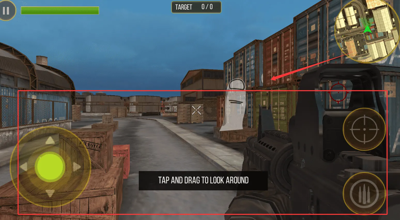 1、玩家通过虚拟摇杆控制角色移动,在复杂地形中灵活走位躲避敌方火力,并利用滑动屏幕操作进行精准瞄准。