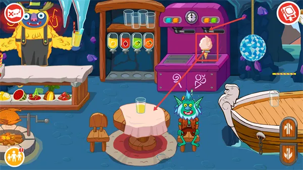 3、从机器中取出【冰淇淋】,搭配已配送的饮品,完善餐桌的餐食供应内容。