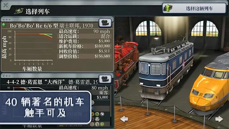 提供40辆著名机车供玩家把玩,从早期蒸汽机车到高速TGV等多款具有重大历史地位的机车应有尽有,满足玩家对铁路历史的探索欲望。